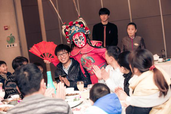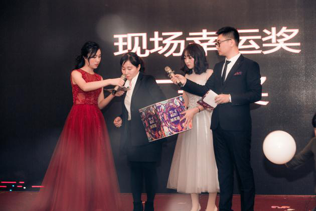 晚宴開(kāi)始后以一首“光年之外”帶起激情歡愉的節(jié)奏,客戶們觥籌交錯(cuò),交流經(jīng)驗(yàn),分享一年來(lái)的碩果累累。音樂(lè)、美食加美酒,構(gòu)成了一幅盛大的宴會(huì)畫卷。晚宴精彩不斷,幸運(yùn)不斷,在勁歌熱舞、中國(guó)風(fēng)雜技變臉中,歡樂(lè)大抽獎(jiǎng)也將整場(chǎng)晚會(huì)推向了高潮。