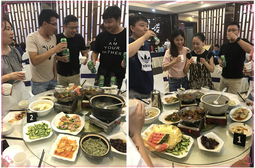 結束一天的行程,大家的精力似乎源源不斷地更新,夜晚已來臨,也沒有任何倦意在大家的臉上浮現,只有肚子在咕咕地抗議著,到達用餐的地點,選定自己的座位,我們李總說出來玩就需要盡興,今晚飯菜管夠,酒水管夠。酒也是一個很好的利器,中國的酒文化博大精深,非常感謝公司能有這樣一次機會讓大家心貼的更近,氣氛更加和諧,大家放下了在工作中的束縛,展現出了真的自我。