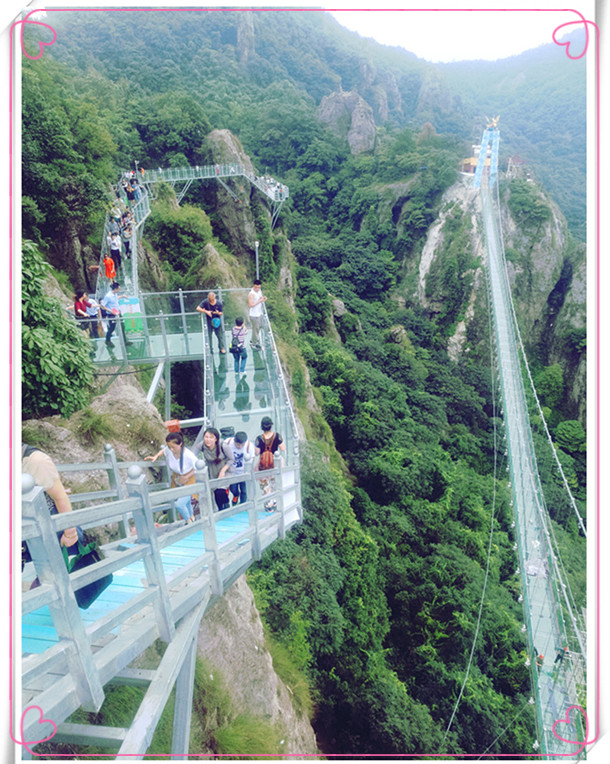 想要體驗玻璃棧道的驚險,我們首先要通過自己的努力爬上山頂,這是一個相互協作的過程,山路的崎嶇,對于久坐辦公室的我們來說是一個考驗,但我們的小伙伴是友愛的,不會落下一個,不會拋下一個,走不動的時候,總會有加油吶喊聲在耳側傳來。辛苦只是過程,結果總是美好的,當顫顫巍巍走到玻璃棧道入口時,我們又是那么的開心,因為我們終于得到了我們想要的結果。玻璃棧道上,小伙伴做著各種各樣的造型,證明自己來過,展示著自己的強大內心。